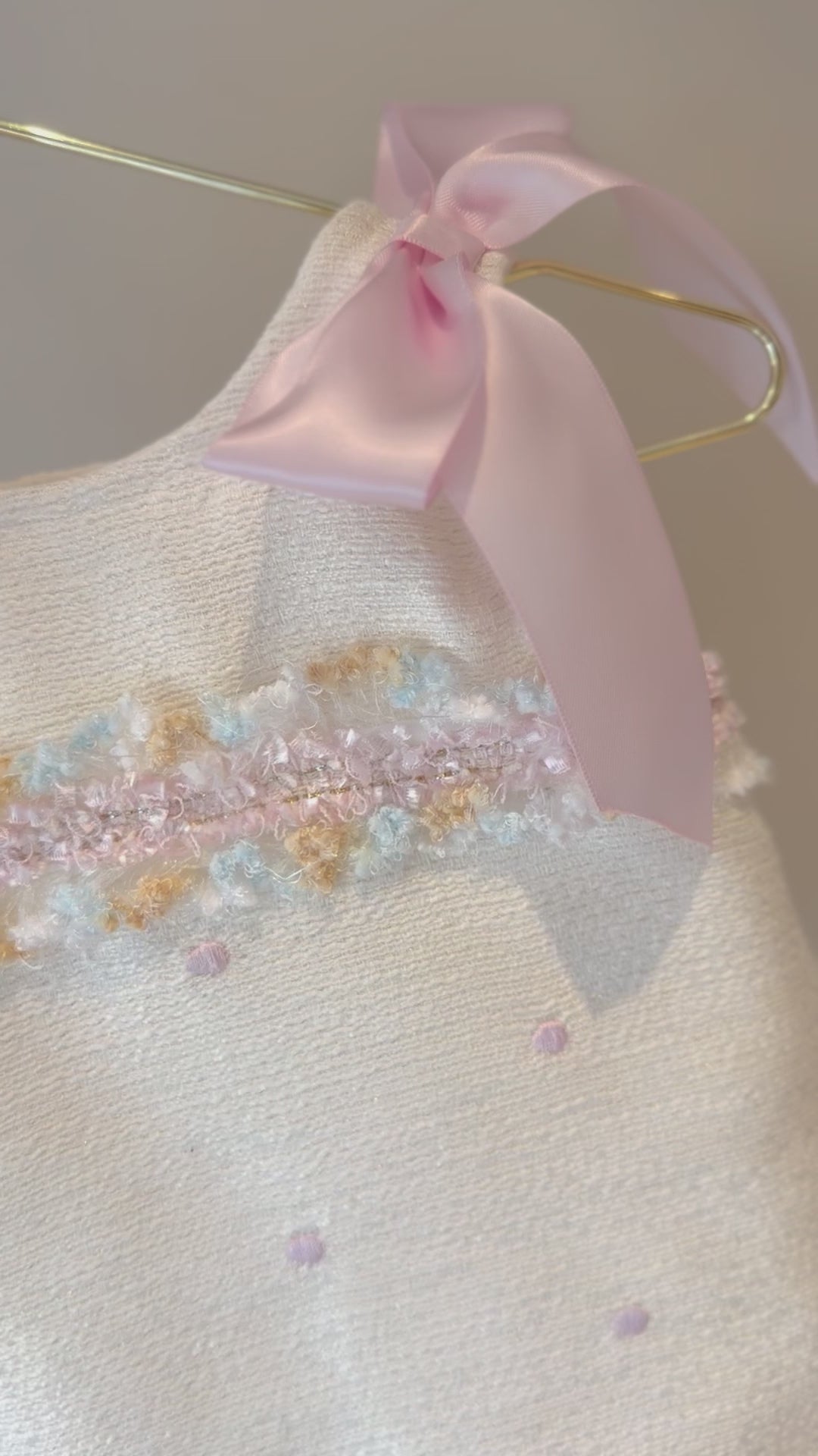 Introducing the SS26 Baby Girls Pink & Cream Spot Tulle Dress , a delightful addition to your little one’s wardrobe. This charming outfit features a unique pink stripe design, perfect for any occasion and sure to turn heads.