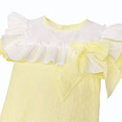 Introducing the SS26 Baby Girl Lemon Plumetis Romper, a delightful addition to your little one’s wardrobe. This charming romper features a unique pink stripe design, perfect for any occasion and sure to turn heads.