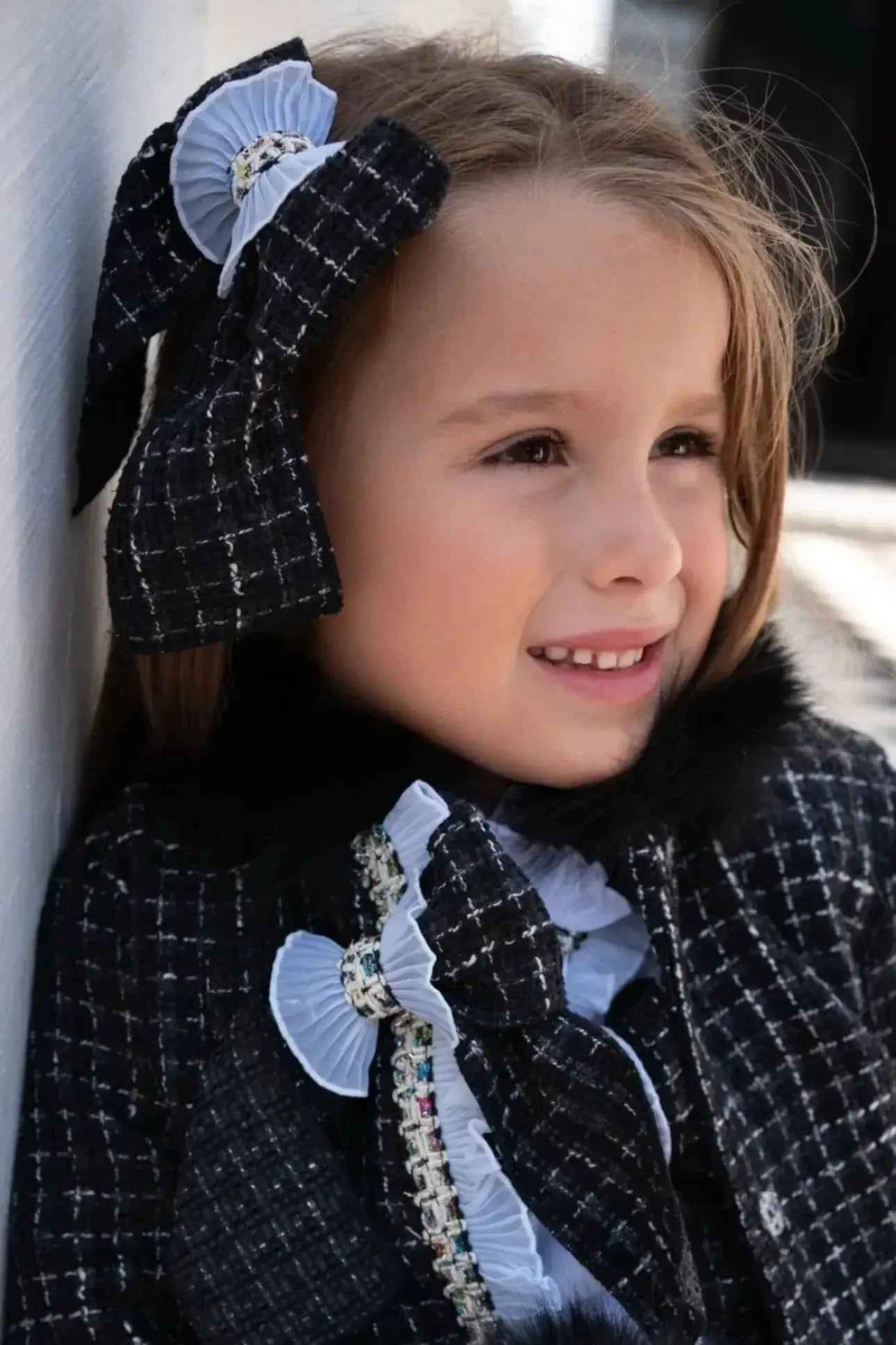 Don’t miss your chance to add this exceptional piece to your child's wardrobe. Get your AW25 Naxos Girls Black Tweed Blazer set today and let your little one step out in style!