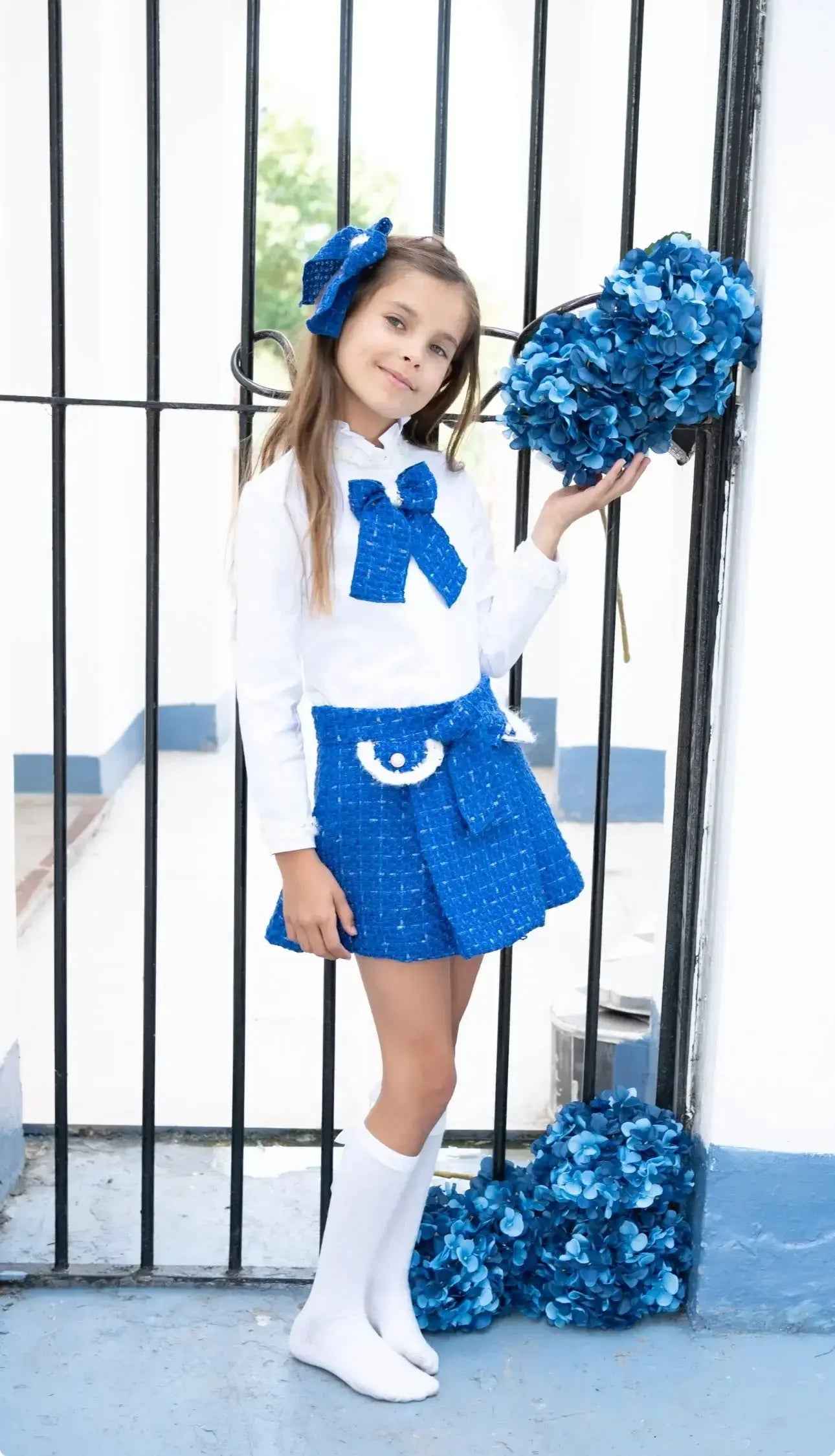 Crafted from high-quality tweed, the blazer features a tailored fit that enhances your child's silhouette, while the matching skirt adds a playful touch. The vibrant royal blue color sets this set apart, ensuring your little one stands out in style.