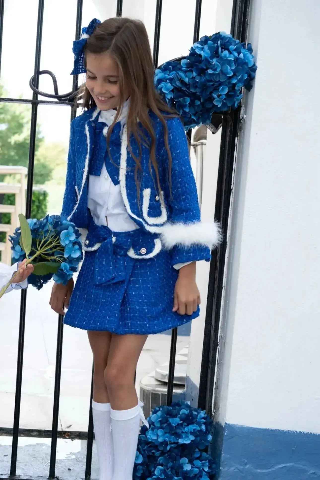 AW25 Naxos Girls Royal Blue Tweed Blazer & Skirt Set