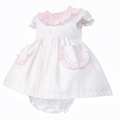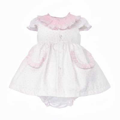 SS26 Baby Girls Pink Spot Smock Dress & Knickers