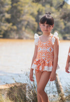 Featuring a delightful cherry print and elegant tulle detailing, this swimsuit is sure to turn heads at the pool or beach. It's not just a swimsuit; it's a fashion statement for any style-savvy girl. Make summer unforgettable with this must-have piece from Spanish Baby Wear.